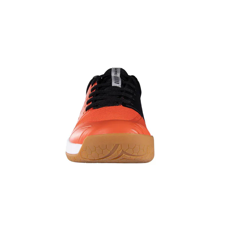 Salming Recoil Ultra, the ultimate court shoe for serious players. With superior lateral heel and mid foot stability, this shoe is designed to support your power moves while providing all-around comfort. The Recoil+ foam midsole offers a bouncy, energetic feel with a perfect mix of cushioning and agility. The functional lacing construction ensures a unique fit that enhances your performance. The soft materials and lines in the heel/collar provide maximum comfort. The outsole features rounded edges and a Hexagrip+ pattern that works on dirty floors, while the forefoot flex grooving ensures a natural stride. Don't settle for less - choose the Salming Recoil Ultra for the most stable, comfortable and secure indoor experience.