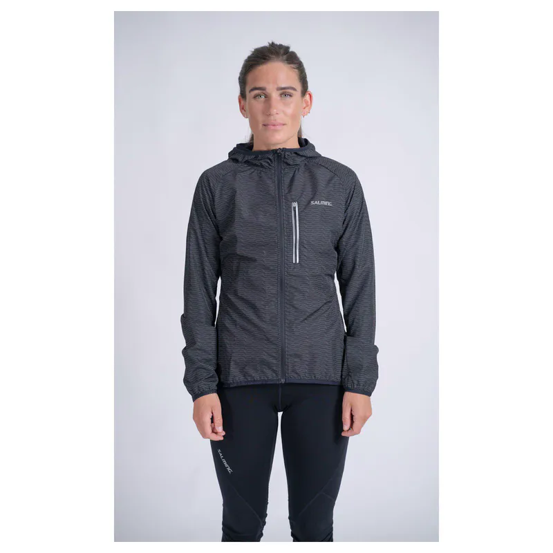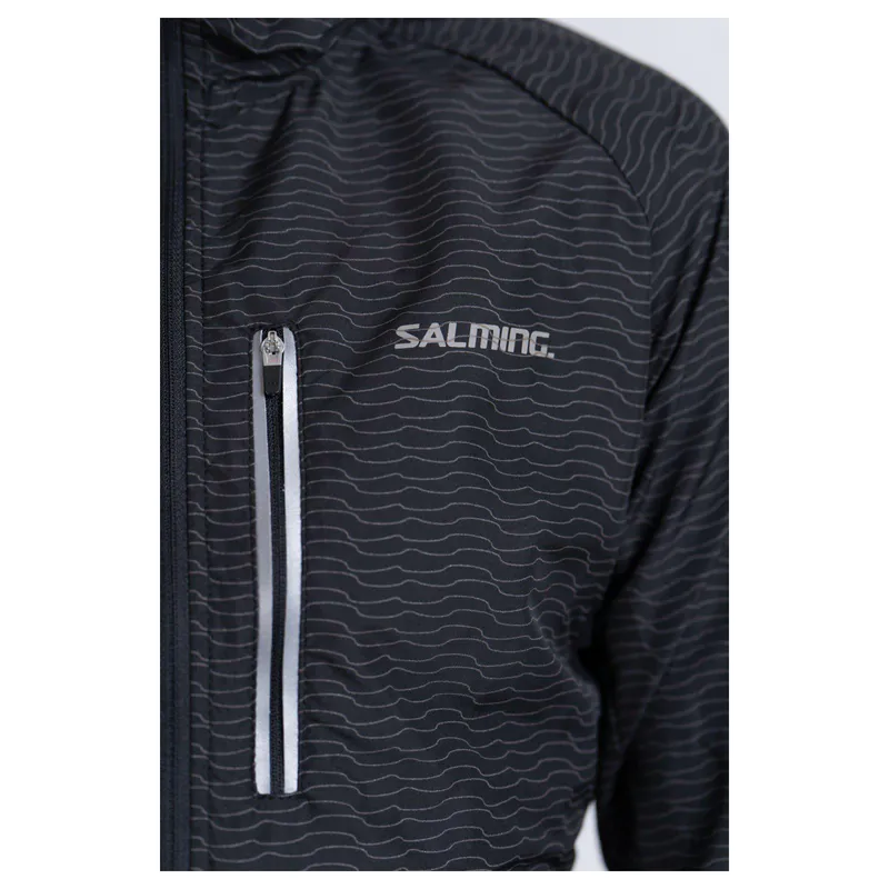 Reverse YKK zipper to prevent water from entering. Reflective Salming logotype at chest and back. Chest pocket with reflective details. Elastic binding at sleeve, throat, and hem.