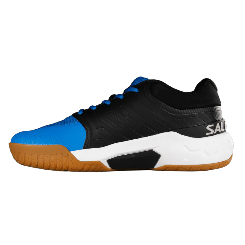 Salming Recoil Ultra, the ultimate court shoe for serious players. With superior lateral heel and mid foot stability, this shoe is designed to support your power moves while providing all-around comfort. The Recoil+ foam midsole offers a bouncy, energetic feel with a perfect mix of cushioning and agility. The functional lacing construction ensures a unique fit that enhances your performance. The soft materials and lines in the heel/collar provide maximum comfort. The outsole features rounded edges and a Hexagrip+ pattern that works on dirty floors, while the forefoot flex grooving ensures a natural stride. Don't settle for less - choose the Salming Recoil Ultra for the most stable, comfortable and secure indoor experience.